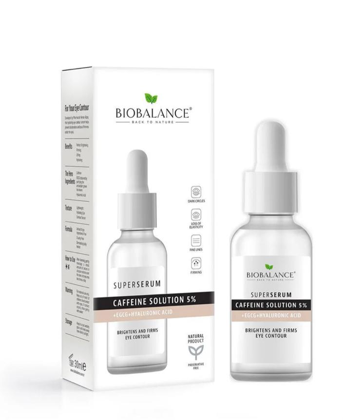 سيروم للسواد مركز يحتوي على 5% كافيين، مخصص للاستخدام على منطقة تحت العينين أو البشرة المتعبة.