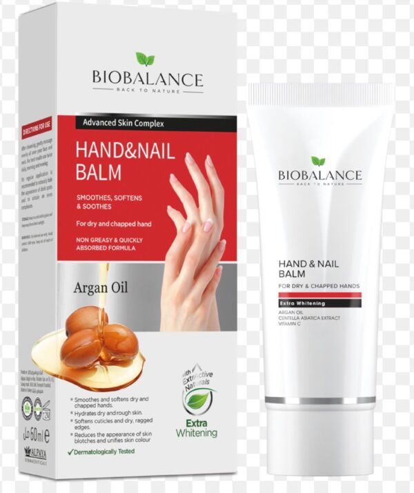 بلسم مخصص للعناية بـ اليدين والأظافر، من ماركات زي BioBalance أو أي ماركة متخصصة بالعناية بالبشرة.