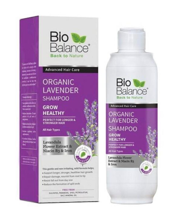 شامبو بيو بالانس العضوي باللافندر (BioBalance Organic Lavender Shampoo) هو منتج مخصص لتنظيف الشعر وفروة الرأس بلطف، مع التركيز على تعزيز نمو الشعر وتقويته.